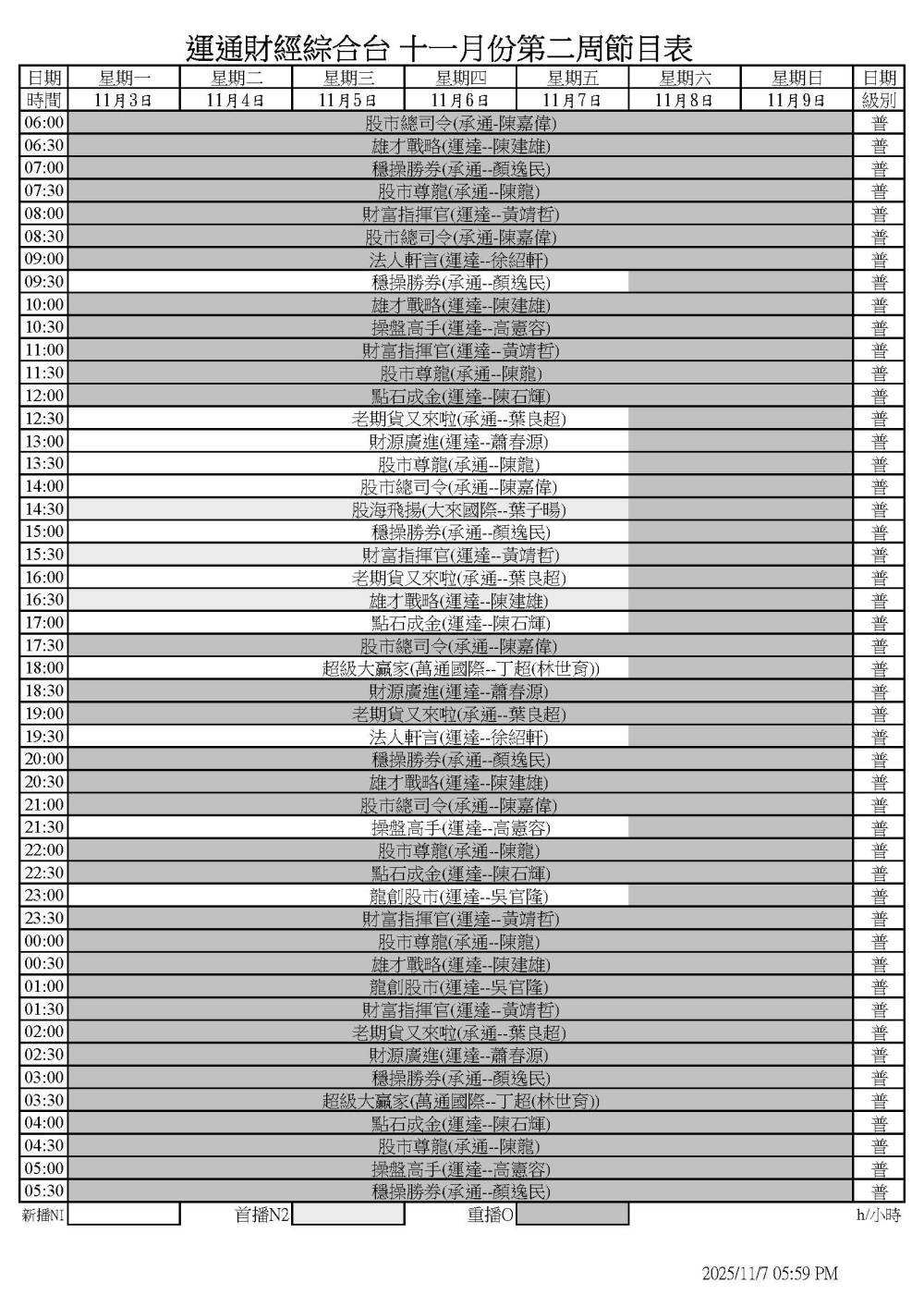114/11/03-114/11/09 節目表