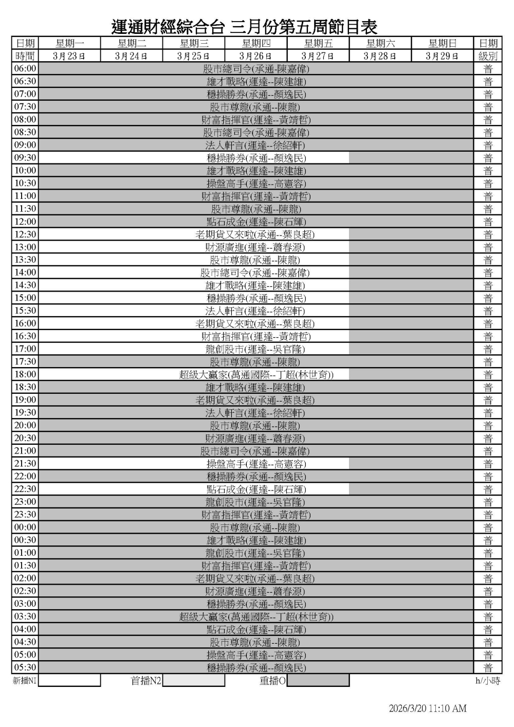 節目表